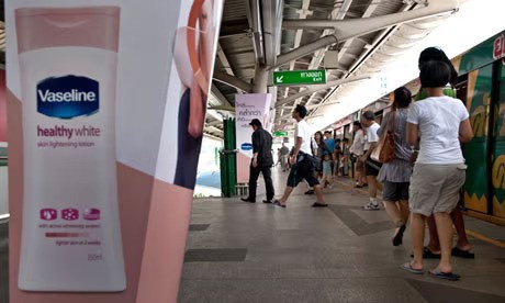 Skin lightening products, including by Nivea and Vaseline, target women through magazines filled with images of fair-skinned Asian pop icons. The campaigns say, “Show off your aura” and “Get to know the miracle of white skin”.
