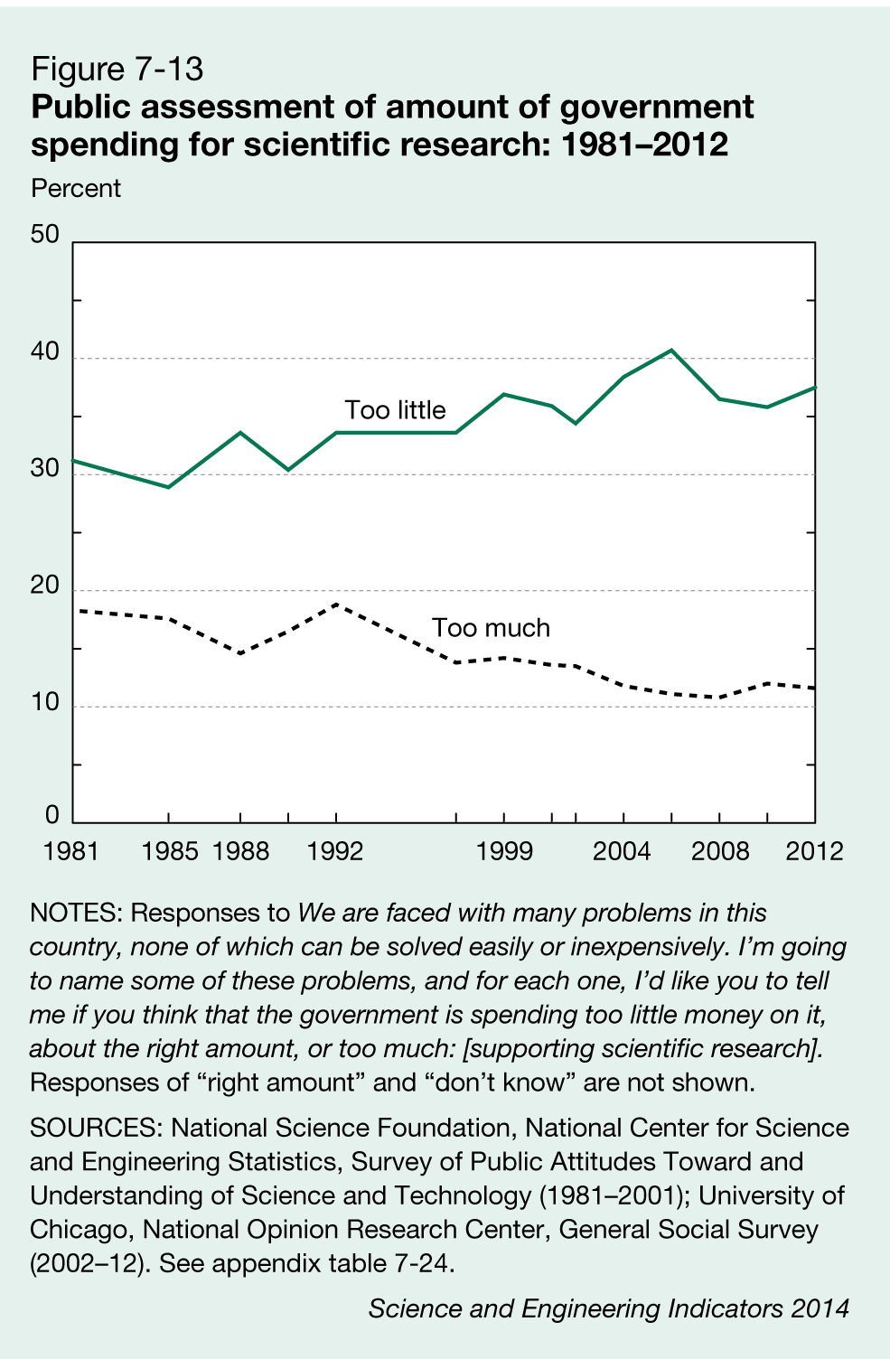 Public assessment of amount of government spending for scientific research 1961-2012